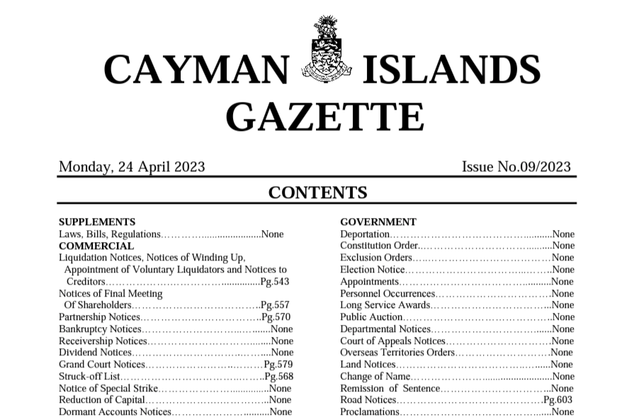 Use this form to subscribe to the Cayman Islands Gazette if you live overseas.